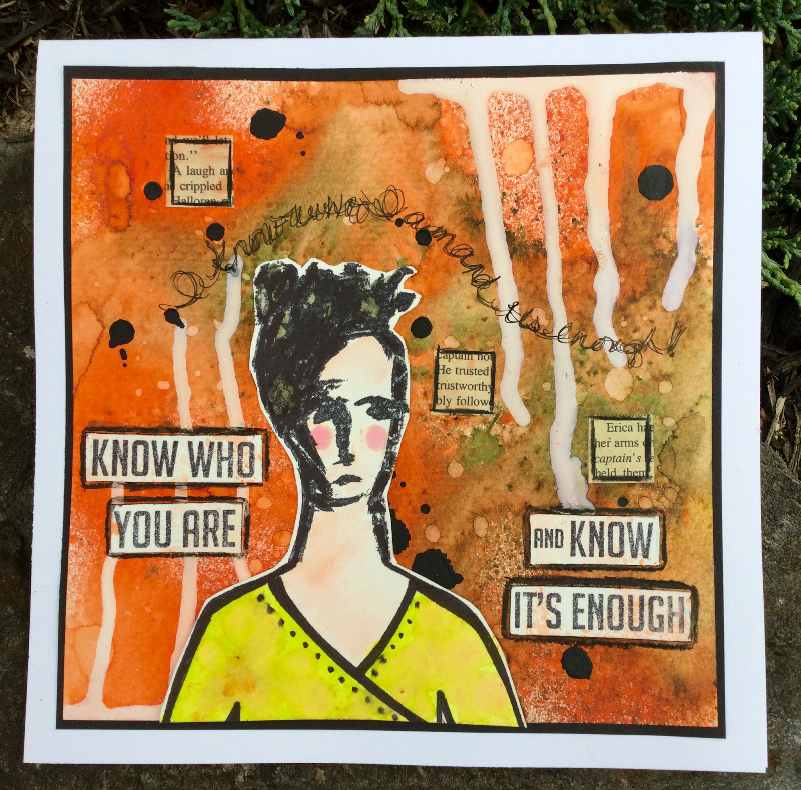 Greetings my friends! My post today is for the June Challenge for the Pink Team over at Eclectic Ellapu where "Anything Goes!"I hope you will stop over and see what the Pink Team has dreamed up to inspire you and then submit a project of your own! I decided to onk up a brand new to me stamp from Kate Crane available through Stampotique. I began with a hot press water color paper panel and sprayed with several shades of Dylusions Ink Sprays. I added polka dots with Festive Berries Distress Ink through a Tim Holtz Stencil. The Stars were wiped out of the background with stencil and a baby wipe. I also added more stars through the same stencil, by Red Lead Paperworks with embossing paste. I added some washi tape by Tim Holtz at the bottom of the card to anchor the angel. The text filled circles are hand cut from a book page and doodled with black and white ink. The sentiment comes with the angel!